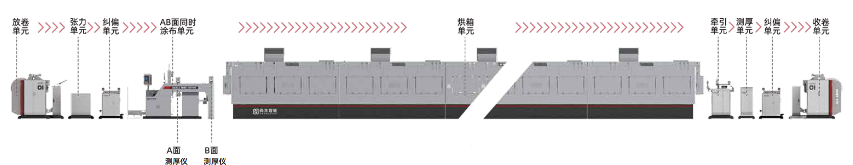 乐天使双面同时挤压涂布系统主要用于电池正负极浆料在铜铝箔材两面的同时涂布,采用高精度预计量控制及狭缝模头技术,具备精度高、效率高、能耗低、产能大、智能化水平高等特点。